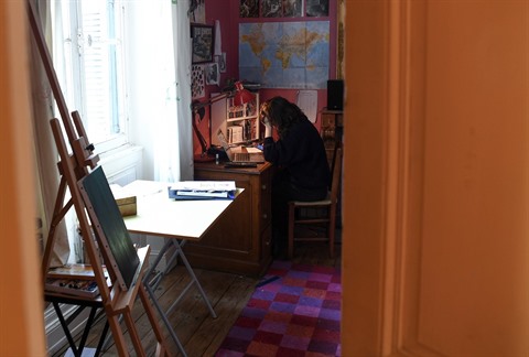 | Une lycéenne suit les cours en ligne à domicile, près de Tours, car confinée comme tous les élèves de France, le 27 mars 2020. |