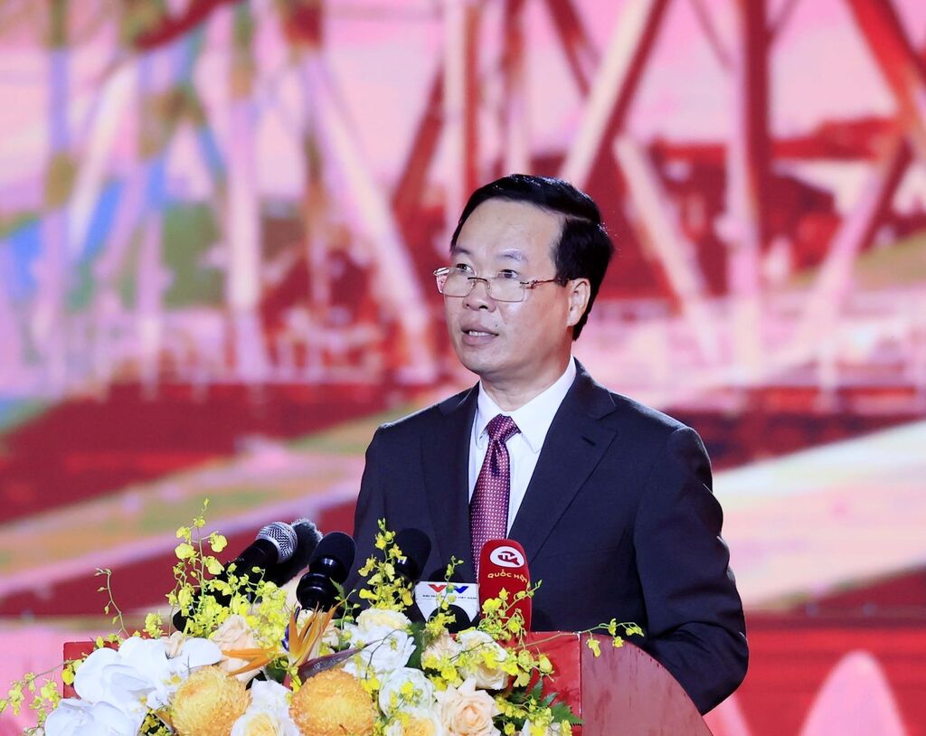 | Le président de la République, Vo Van Thuong, prend la parole à la cérémonie de célébration. |