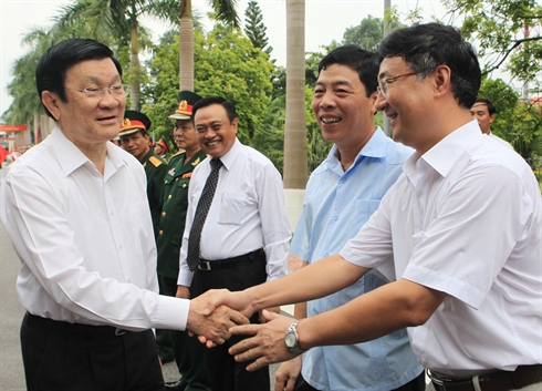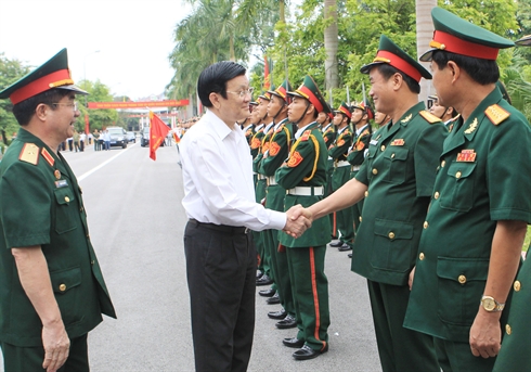 | Le président Truong Tân Sang visite le corps d'armée No2, |