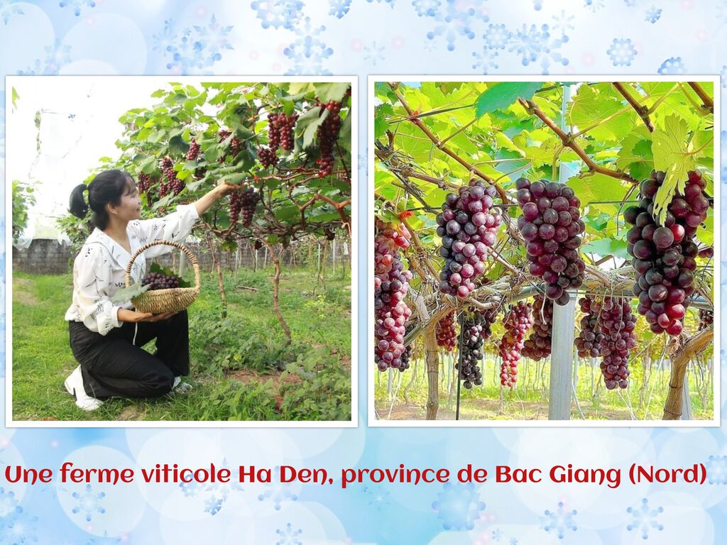 Le modèle de viticulture Ha Den en agriculture biologique, associé au tourisme écologique, développé par Giap Thi Tuyên (née en 1996) dans le village de Thu Duong, commune de Nam Duong (ville de Chu), est devenu l’un des atouts majeurs de l’agriculture locale. Consciente du fort potentiel de sa région pour le développement de l’agriculture propre, en 2021, la famille de Mme Tuyên a investi environ 400 millions de dôngs pour réaménager les rizières, installer des serres et acheter plus de 1.600 plants de raisin Ha Den, cultivés sur une superficie d’environ 6.000 m².