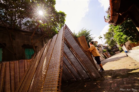 | Des "bánh đa nem" sont séchés au soleil dans le village de Thô Hà. |