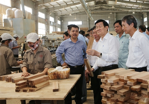 | Le président Truong Tân Sang (premier plan, 2e à droite) a visité le 8 juillet un projet sylvicole de la société par actions Sahabak dans la province de Bac Kan. |