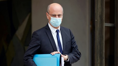 | Le ministre de l'Éducation nationale, Jean-Michel Blanquer, à l'issue du conseil des ministres du 30 juin. |