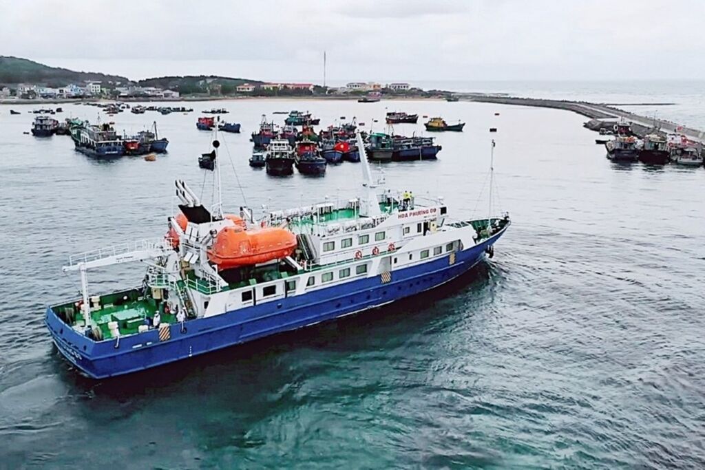 | Le navire Hoa Phuong Do transporte en toute sécurité personnes et marchandises vers l’île, reliant ainsi le continent à cette île lointaine. |