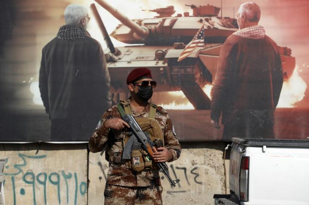 | Un membre des forces du Hachd al-Chaabi en faction lors des funérailles à Bagdad d'un camarade tué la veille dans des frappes américaines contre des groupes pro-Iran, le 25 janvier. |