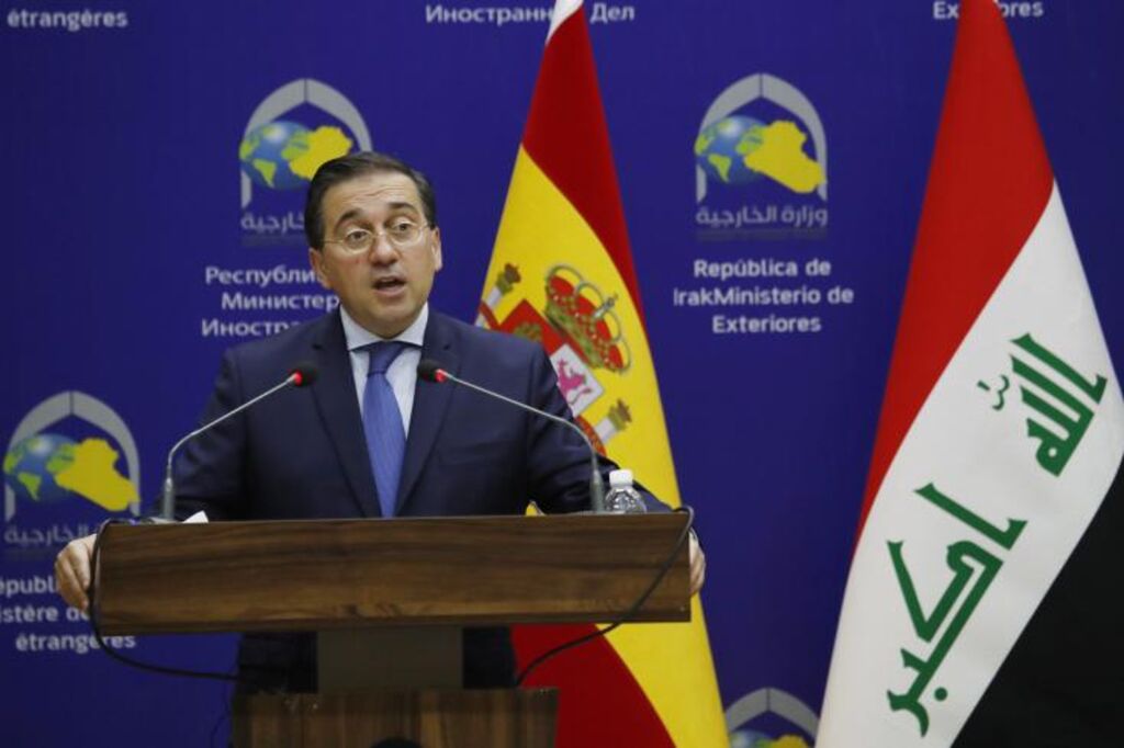 | Le ministre espagnol des Affaires étrangères José Manuel Albares s'exprime lors d'une conférence de presse à Bagdad, le 25 janvier. |