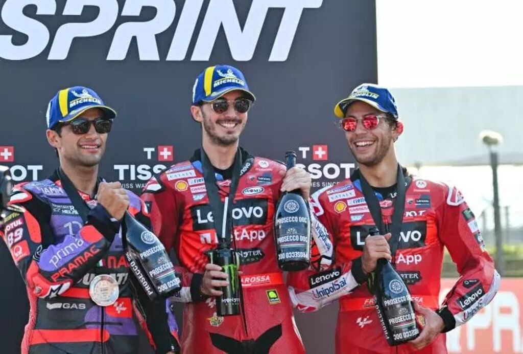 L'autre Ducati d'usine, celle de l'Italien Enea Bastianini, a terminé 3e, tandis que le sextuple champion du monde de MotoGP Marc Marquez (Ducati-Gresini), toujours troisième du général, a franchi la ligne d'arrivée 4e après être parti 7e sur la grille.