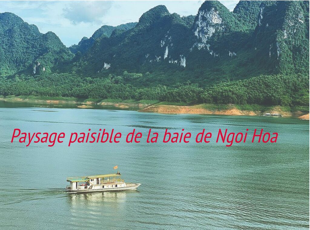 Située au cœur de la zone touristique du lac de Hoà Binh, Ngoi Hoa est surnommée “la baie de Ha Long terrestre” ou “le joyau caché dans les montagnes”. Entre de majestueuses montagnes et les eaux scintillantes du lac, elle jouit d’une situation géographique exceptionnelle. Le paysage y est d’une grande diversité, offrant un spectacle sans cesse renouvelé, tandis que le climat frais et pur invite les touristes à la contemplation.