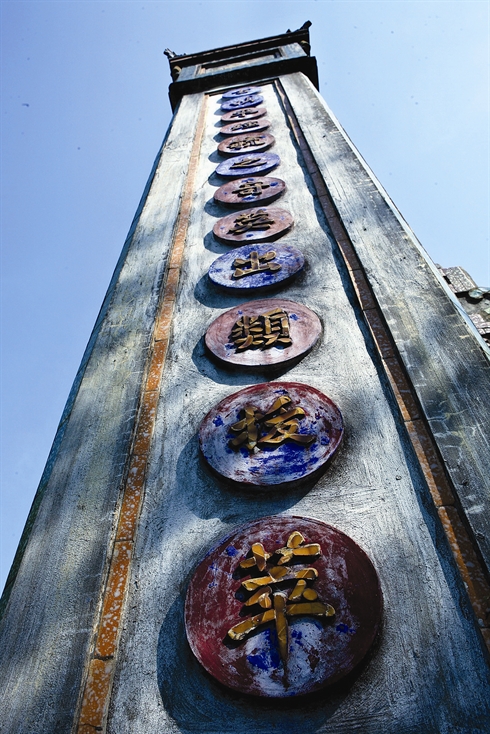 | L’une des sentences parallèles à la porte d’entrée loue les traditions du village. |
