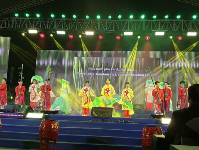 Les duos franco-vietnamien Hua Thanh Tú & Étienne et suisse Sophie de Quay & Simon Jaccard ont subjugué l’audience par une prestation tout en finesse et en émotion. La chanteuse vietnamienne Hà Myo a su, quant à elle, captiver les cœurs et tisser un pont émouvant entre cultures locale et francophone.