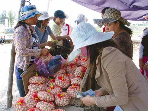 | Comme souvenir de Ly Son, les touristes rapportent souvent avec eux de... l’ail. |