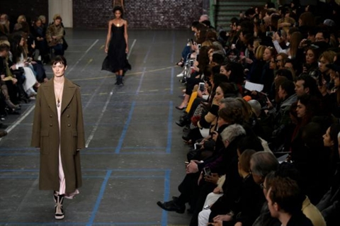 Le show, un événement de cette semaine de défilés parisiens, se tenait dans une salle de studio d'enregistrement d'émissions télévisées, aux murs capitonnés de mousse blanche, et pouvait être visionné en direct et à 360° grâce à une application pour smartphones et tablettes.