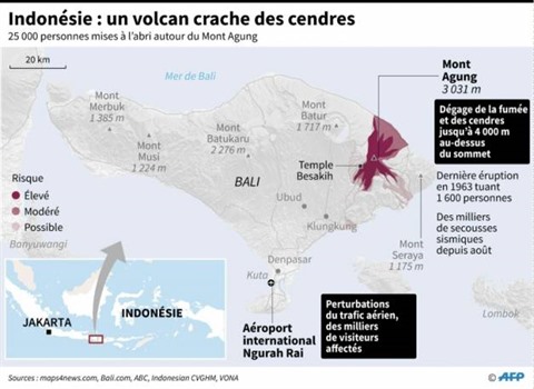 >>Indonésie : un volcan de Bali perturbe le trafic aérien