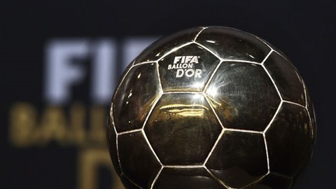 | Le Ballon d'Or du meilleur footballeur de l'année exposé au Palais des congrès à Zurich, le 11 janvier. |
