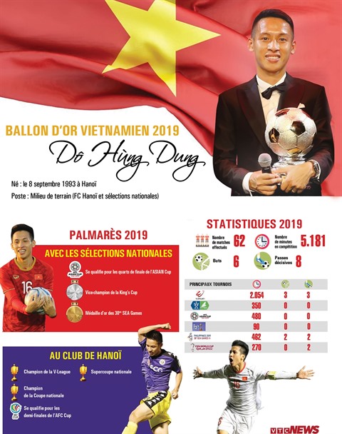 | Le milieu de terrain Dô Hùng Dung a remporté le Ballon d’Or 2019. |
