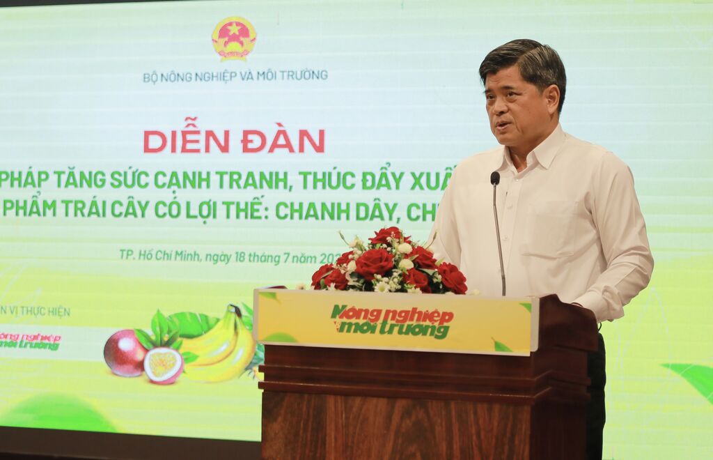 | Le vice-ministre Trân Thanh Nam de l'Agriculture et de l'Environnement au forum intitulé "Solutions pour améliorer la compétitivité et promouvoir l'exportation de fruits à fort potentiel", le 18 juillet à Hô Chi Minh-Ville. |