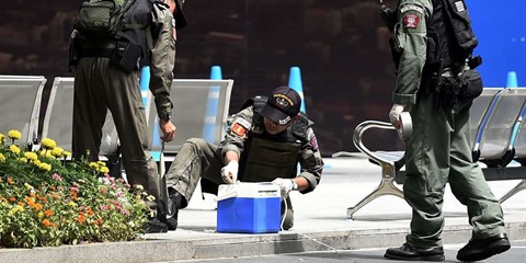 | Des artificiers thaïlandais s'activent sur les lieux d'une explosion à Bangkok, le 2 août. |