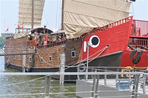 | Un bateau de croisière sur la rivière Chao Phraya. |