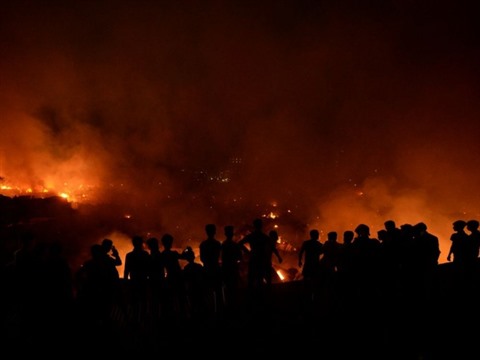 | Incendie dans un bidonville de Dacca, le 16 août 2019 au Bangladesh. |