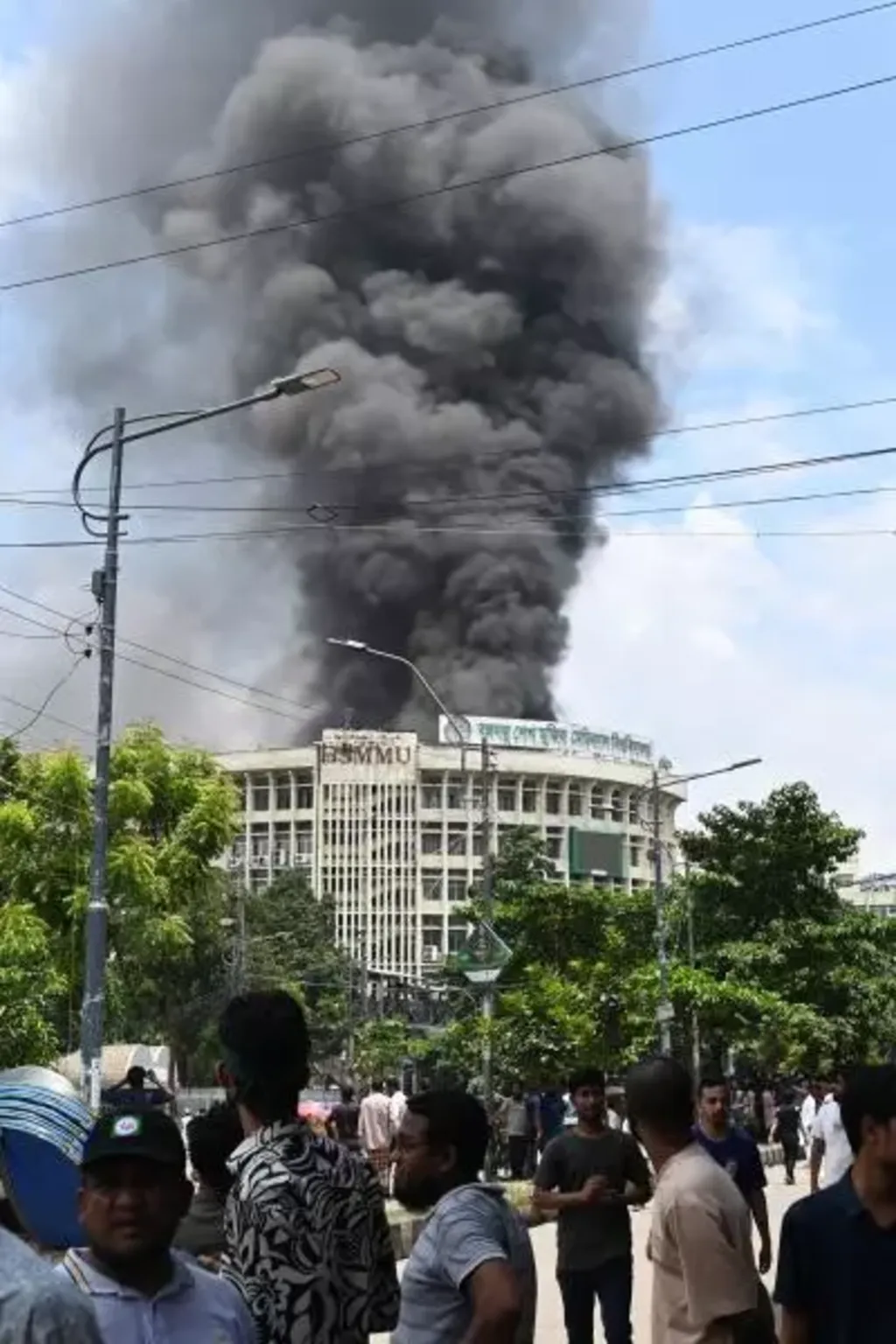 | De la fumée s'élève de l'Université de médecine Bangabandhu Sheikh Mujibaprès des échauffourées entre forces de l'ordre et manifestants réclamant la démission de la Première ministre bangladaise Sheik Hasina, le 4 août à Dacca. Photo : AFP/VNA/CVN |