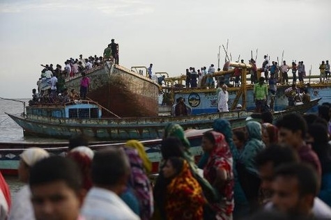 | Un ferry surchargé le 5 août 2014 sur le fleuve Padma Munshiganj. |