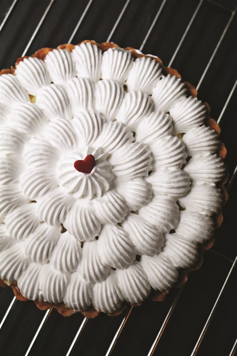 Autre suggestion : utiliser une poche à douille pour donner forme à la crème chantilly sur la surface du gâteau.