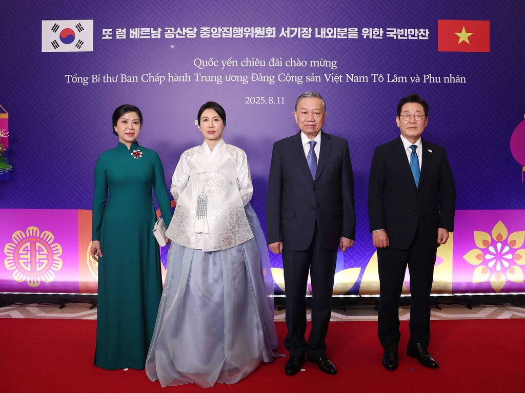 | Le secrétaire général du Parti, Tô Lâm (2e à partir de la droite), le président sud-corée Lee Jae Myung et leurs épouses. |