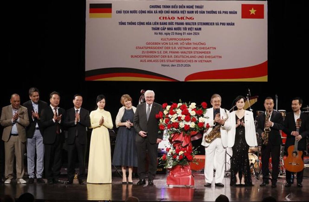 Après le banquet, le président Vo Van Thuonfg et son épouse ont invité le président Frank-Walter Steinmeier, son épouse et les délégations de haut rang des deux pays à profiter d'un spectacle présenté par l'Académie nationale de musique du Vietnam.