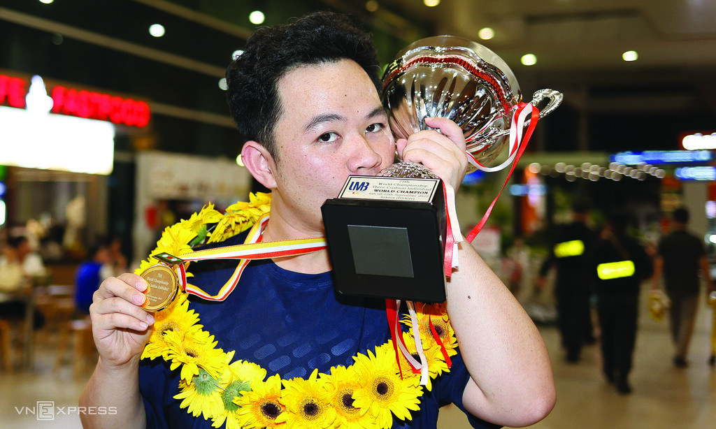 | Le nouveau champion du monde de billard carambole à trois bandes, Bao Phuong Vinh. |