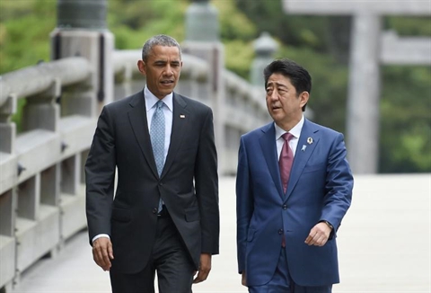 | Barack Obama (gauche) et Shinzo Abe, le 26 mai |