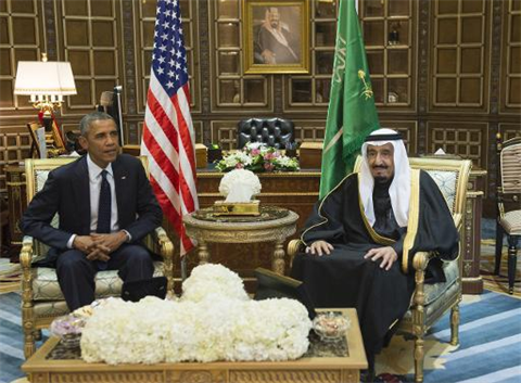 Selon un haut responsable américain, Barack Obama et Salmane ont évoqué lors d'une rencontre bilatérale le "soutien nécessaire à l'opposition" au président syrien Bachar al-Assad. L'Arabie saoudite est elle-même impliquée dans le conflit, puisqu'elle participe à la campagne contre l'État islamique (EI).