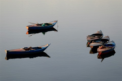 | Des bateaux de pêcheurs sur le Nil à Shallal, près d'Assouan en Égypte. |
