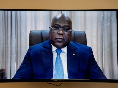 | Le président de la République démocratique du Congo, Félix Tshisekedi, lors d'une vidéoconférence au One Planet Summit, à Paris. |