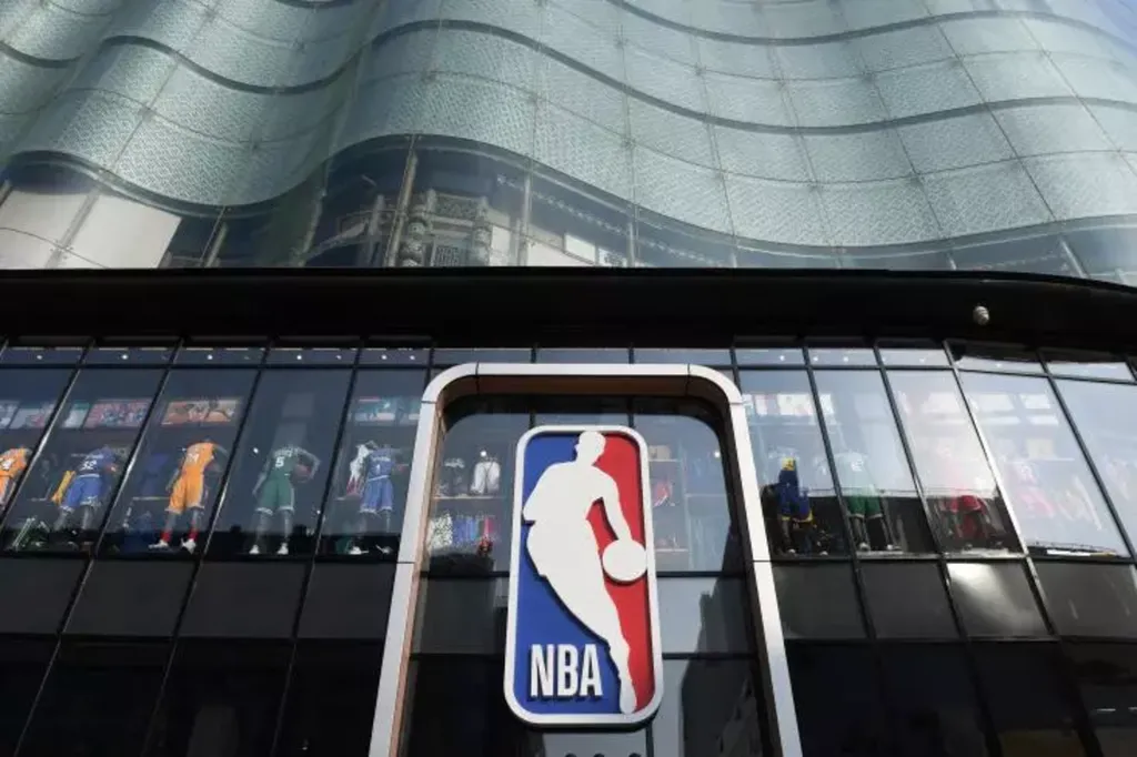 | Le logo de la NBA sur la devanture d'une boutique à Pékin (photo prise le 9 octobre 2019). |
