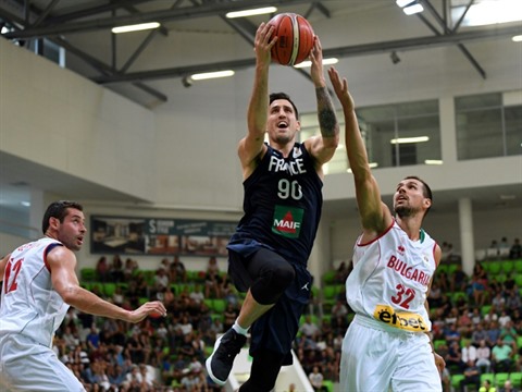 | Le Français Paul Lacombe monte au panier contre la Bulgarie lors du match aller disputé à Botevgrad, le 13 septembre. |