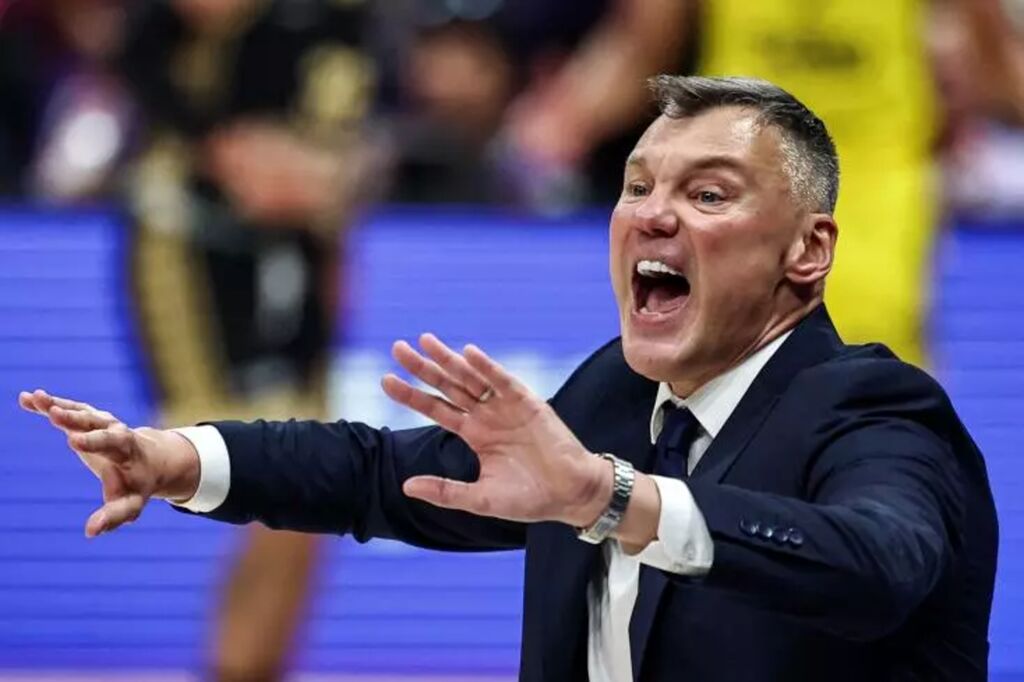 | L'entraîneur de Fenerbahçe, Sarunas Jasikevicius, lors de la finale d'Euroligue, le 25 mai à Abou Dhabi. |