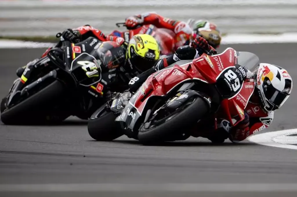 | Le pilote espagnol Jorge Martin (Ducati-Pramac, N°89) lors du Grand-Prix de Grande-Bretagne MotoGP à Silverstone le 4 août. |