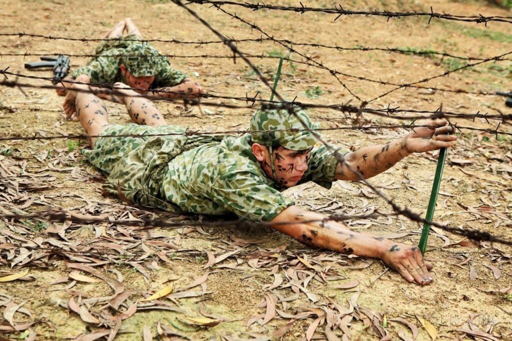 | Soldats de la Brigade des commandos 113 réalisant un exercice technique de franchissement d’obstacles. |