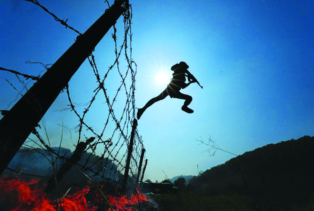 | Le franchissement du mur de feu, épreuve redoutable, forgeant la volonté de fer des soldats de la Brigade des commandos 113. |