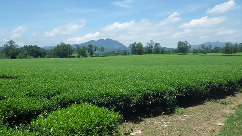 Si, au Vietnam, on ne boit pas que du thé, le thé, lui sait se faire boire! Le thé, j'ai fait sa connaissance lors d'un voyage dans les montagnes du Nord. J'avais bien vu en photo ses longues allées plantées d'arbustes à petites feuilles, mais, quand je me suis retrouvé au milieu d'un champ de thé qui ondulait à perte de vue au flanc de collines, je me suis senti ému par ce bonsaï courageux qui accepte de se faire raser les pousses régulièrement pour satisfaire la gourmandise humaine. Elles m'auraient presque fait de la peine, ces petites feuilles vert tendre qui à peine déployée au soleil du Vietnam, allaient finir dans la touffeur moite d'un sac en toile.