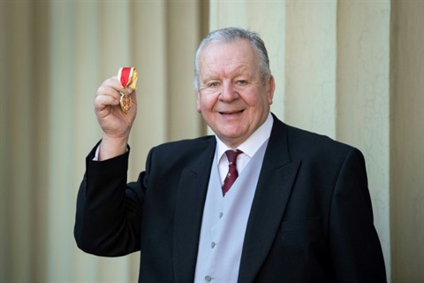 | L'Anglais Bill Beaumont, réélu président de World Rugby lors de la cérémonie au cours de laquelle il a été fait Knigh Bachelor au palais de Buckingham en février 2019. |