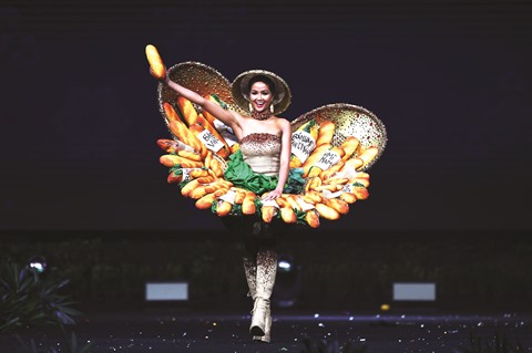 | Le costume national de H’Hen Niê, représentant le "bánh m |