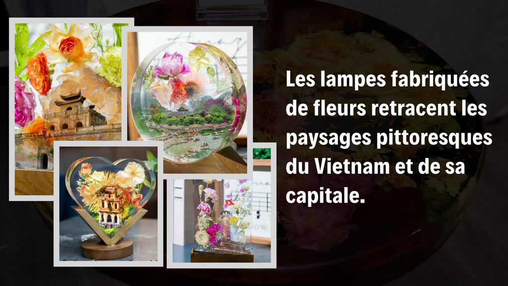 "L’idée de confectionner des lampes représentant des paysages du pays m’est venue lorsque j’ai visionné par hasard un vidéo clip sur les fleuristes de Mê Linh (Hanoï) qui regrettaient de devoir couper certaines fleurs qui se fanaient rapidement", se souvient Thu Hiên qui avait toujours en tête d’immortaliser la beauté éphémère des fleurs. C’est désormais chose faite, elle leur offre une nouvelle vie avec ces lampes en qui retracent les paysages vietnamiens. "Cela contribuera à promouvoir la culture du pays dans le reste du monde. Ces petites vitrines lumineuses, revêtent la fierté du peuple", explique-t-elle.
