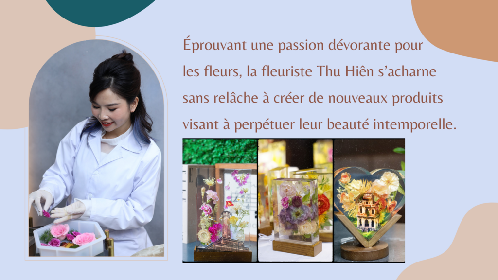 Avant de présenter ses lampes en fleurs séchées, Thu Hiên était déjà largement connue pour ses créations en lotus de pierre à Hanoï. Avec sa nouvelle collection de lampes en fleurs séchées, cette artisane passionnée ambitionne de propager les valeurs de son métier et de promouvoir la culture de son pays.