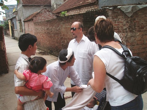 Un mois de juillet, comme un autre. Chaud et humide, donc propice aux méfaits du soleil et des moustiques. Avec des amis français et leur bébé de quelques mois, nous nous promenons dans un petit village des bords du fleuve Rouge. L’atmosphère étouffante et polluée de la capitale nous a incités à fuir à la campagne. Un petit vent chatouille agréablement nos visages, et la fraîcheur des ruelles étroites nous semble un bain de jouvence.