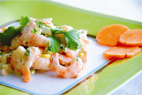 Ajouter la mayonnaise aux crevettes et mélanger le tout.