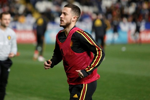| Eden Hazard à l'échauffement avant son match avec la Belgique contre Chypre, le 24 mars à Nicosie. |