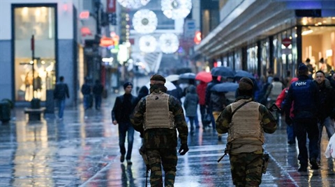| Des soldats belges en patrouille, le 21 novembre à Bruxelles |