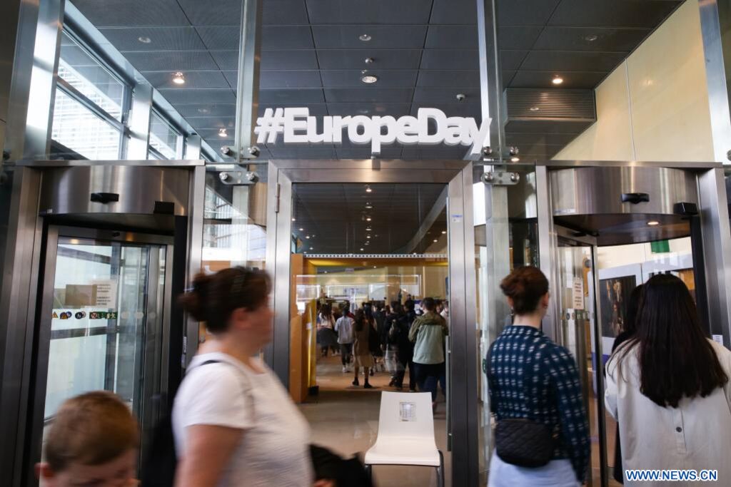 Des visiteurs pénètrent dans le bâtiment de la Commission européenne lors de la journée portes ouvertes des institutions européennes à Bruxelles.