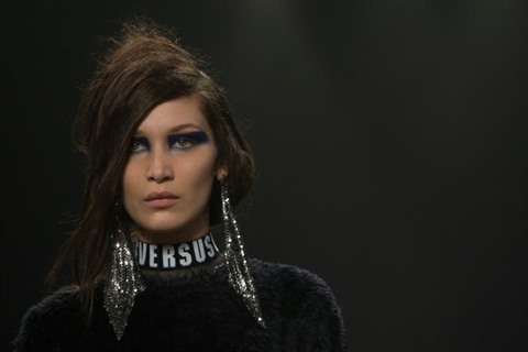 | Le mannequin Bella Hadid présente la collection Versace, lors de la Fashion Week de New York, le 18 février. |